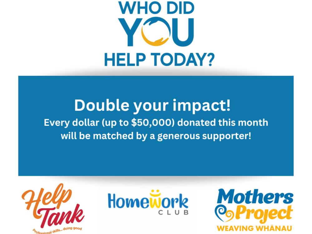 We’re extremely humbled by the offer of one of our supporters to match every dollar we raise this month (up to $50,000) to help keep the Who Did You Help Today Trust making a difference to Kiwi lives.