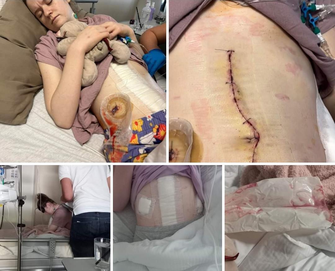 Day 6 Jaimee had the drain removed on the right side of her abdomen. Due to fluid retention there has been a huge increase in swelling/bloatedness which is normal.