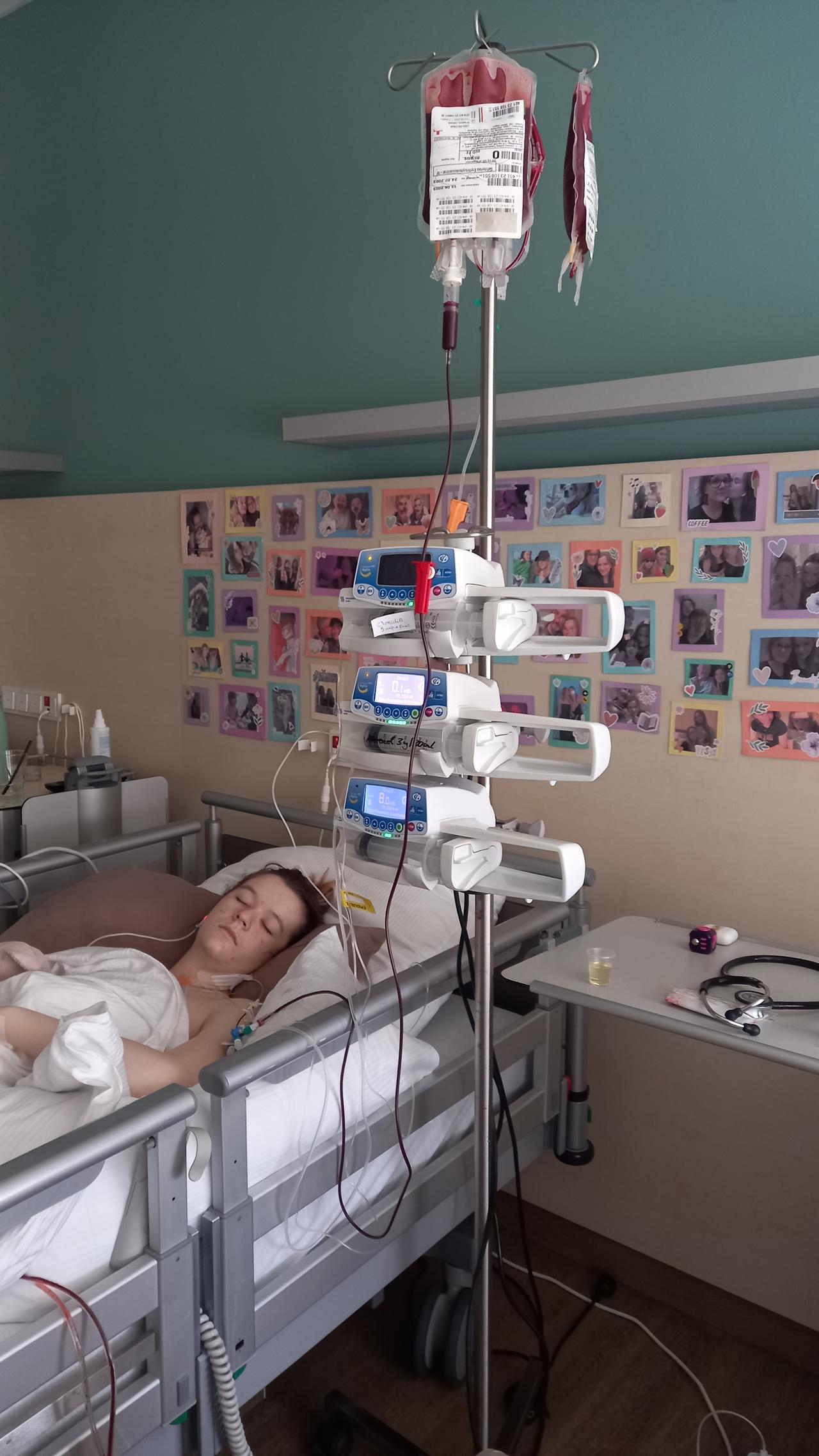 Jaimee needed to have a blood transfusion as she was loosing too much blood. They gave her 2 units of packed red blood cells and a bottle of plasma containing the blood clotting factors. They did say the blood loss has slowed down so let's hoping it's better tomorrow.
