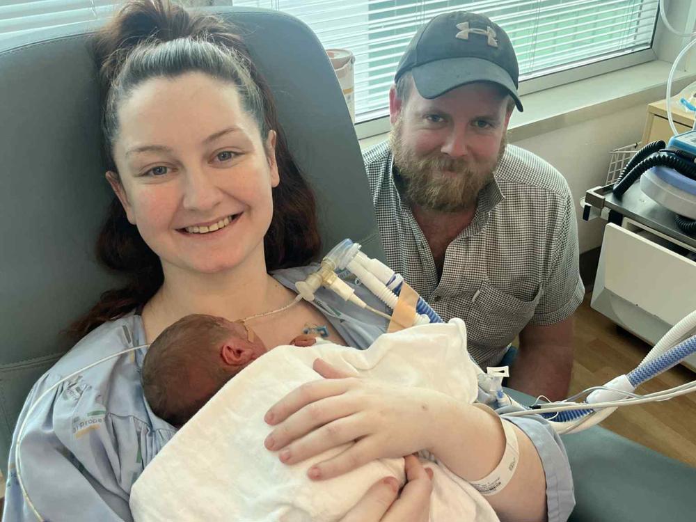 Sam and Conner were urgently flown to Auckland Hospital, where baby Albie was delivered by emergency C-section at just 30 weeks due to a placenta rupture.