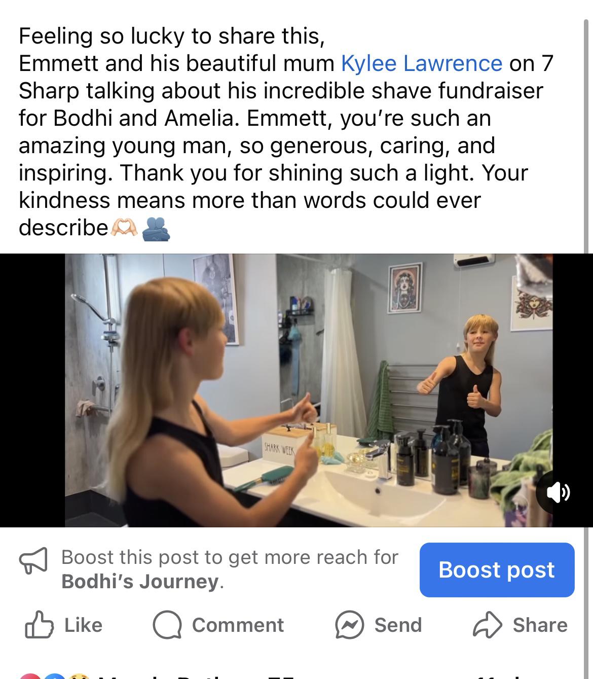 To Emmett – you’re such an incredible, big-hearted young man. And to your amazing mum Kylee Lawrence – thank you for raising someone so special and for standing beside us with so much love.
