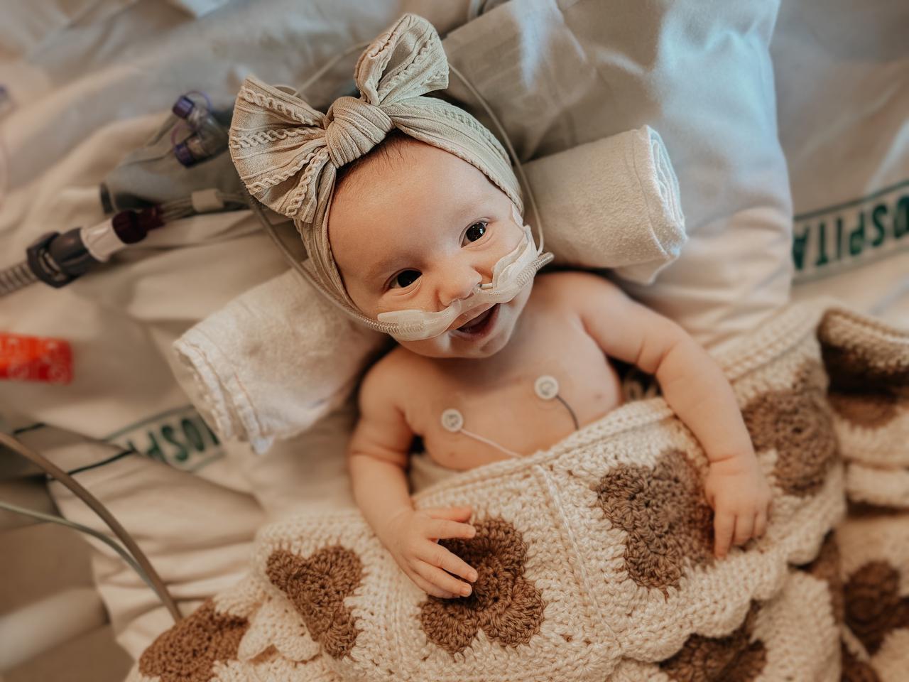 Our Harlee girl truly is a miracle story! Everything you have done was/is working. Every “possible negative”they were expecting to happen hasn’t over the last couple of days. She has surprised even the doctors and nurses in PICU. Late yesterday we were transfered back to the IOA(Intensive Observation Area) on the heart ward, Ward 23B which we now hold very close to our hearts. The first couple of days after surgery were hard and Harlee wasn’t coping well. It wasn’t looking too good. She took a MASSIVE turn very suddenly to the surprise of everyone, even the doctors. She is strong. So, so strong. All of your prayers worked. Her temperature settled right down, there was no underlying issue. Her oxygen has been removed and it is always sitting between 95-100 which has NEVER been the case before. Her little body will take time to get used to her heart being healed but we already see a big difference in her. She has lost weight overnight(110g) and is dehydrated but they have a plan to manage and improve that. Her pacing wires were removed today, which is a massive win! She has a little bit of a cough but they are not overly concerned about that at this stage so YAY!