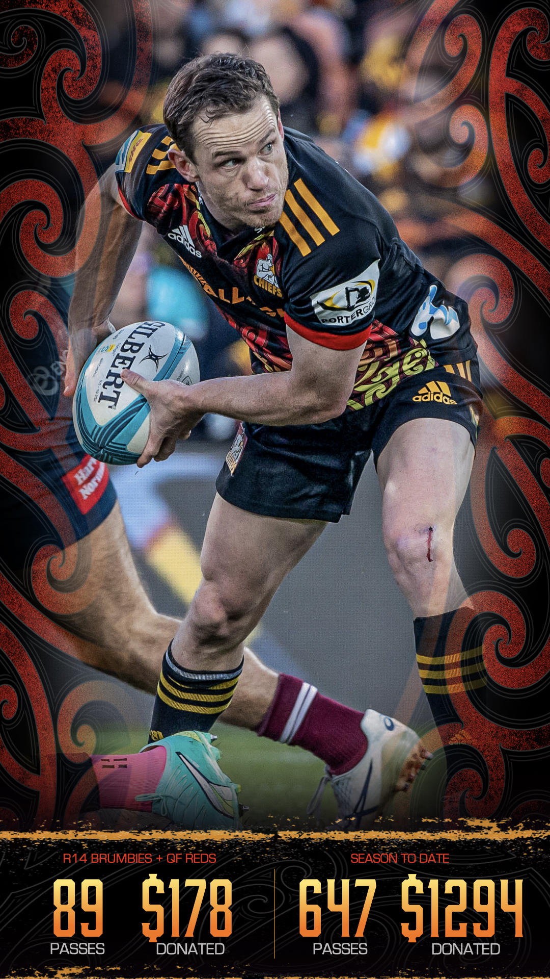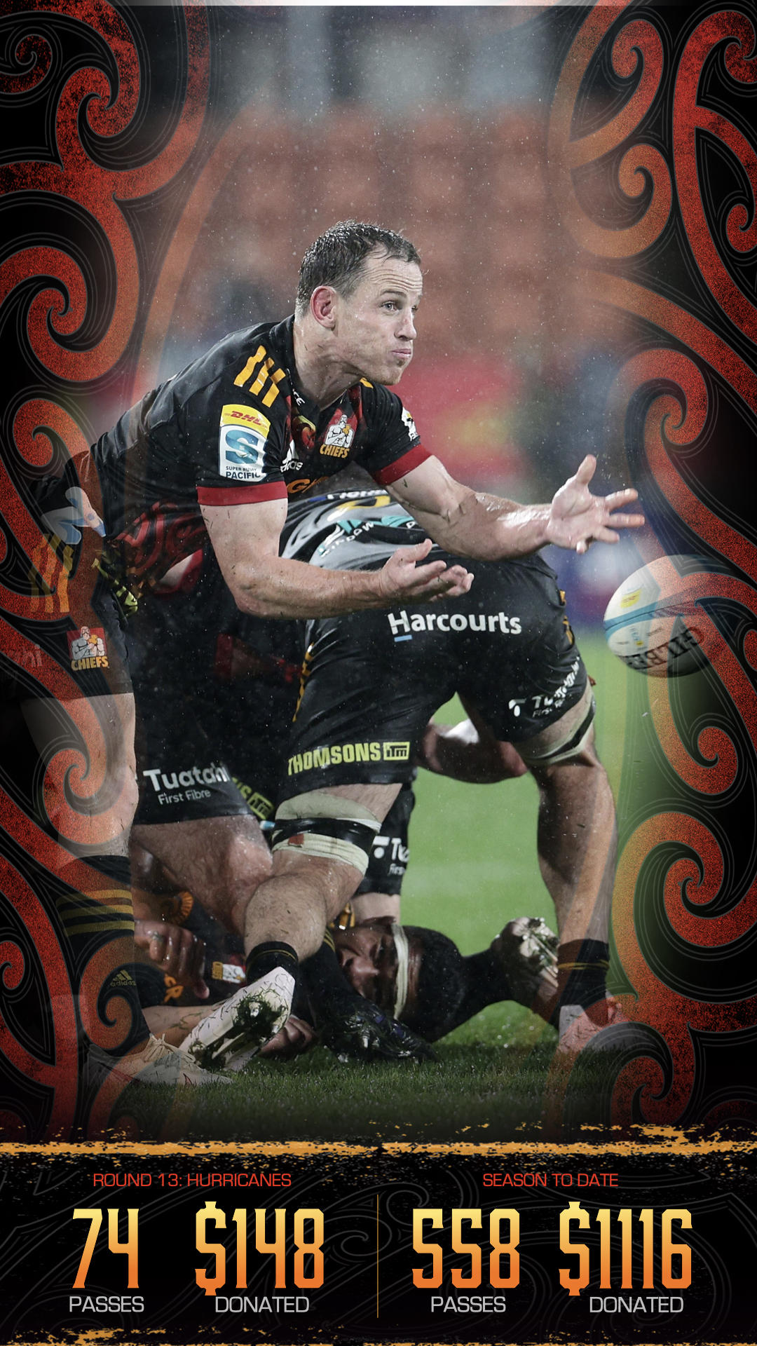 23 July 2023Well here we have it, the final donation update! In the Super Rugby Final I made 41 passes so I'll be donating $82 for that effort. That brings my total passes for the season to 771 in which I've donated $1542 for the people in Hawkes Bay still recovering from the devastating effects of Cyclone Gabrielle.