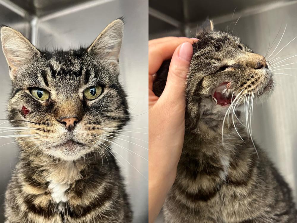 Bruce the Cat, a sweet old boy with an enormous hole in his face needs urgent dental surgery.