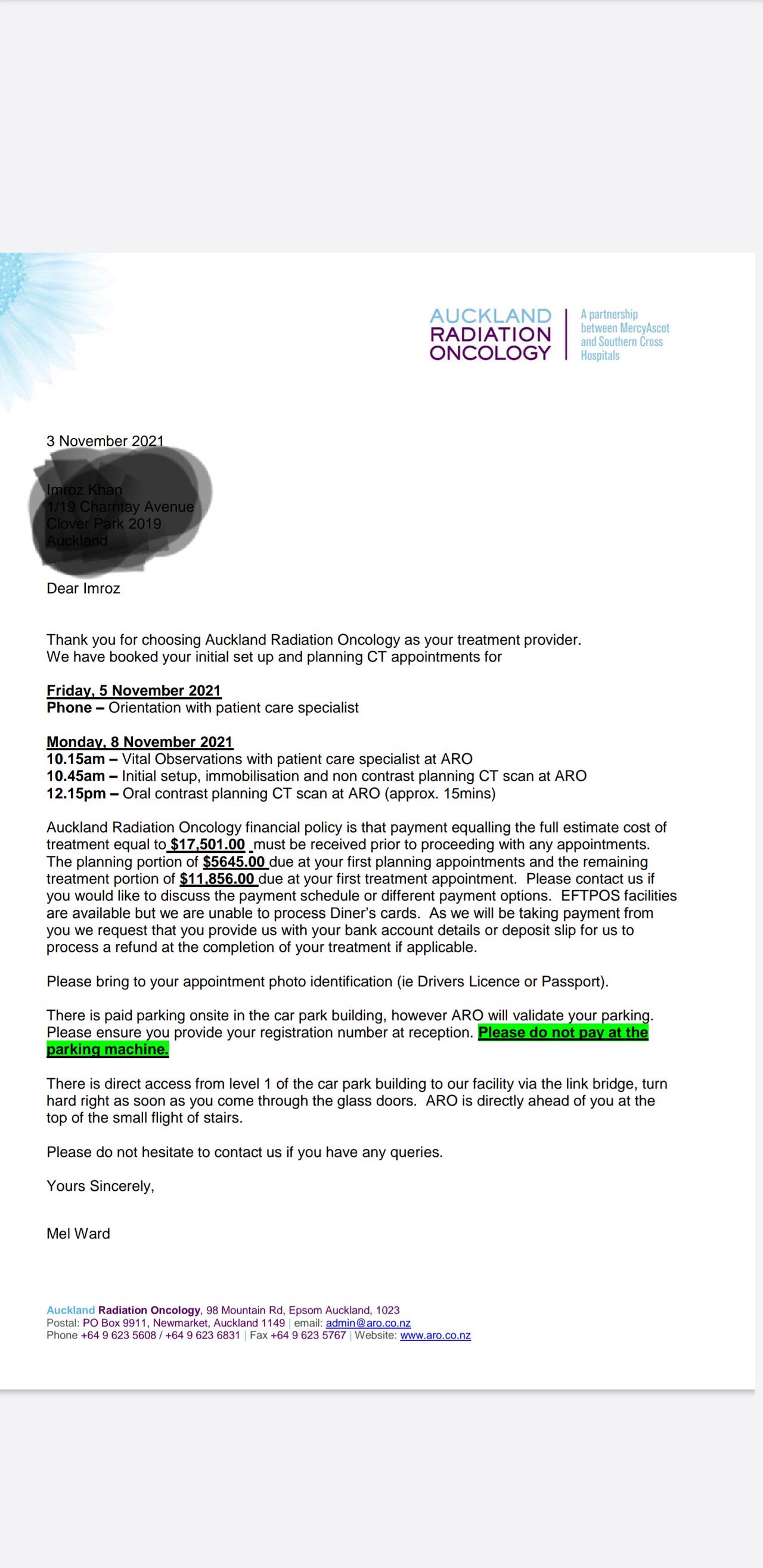 *Brother IMROZ has been in Auckland NZ since 22 June 2021 and HE has gone through the First Lot of 3 Session for CHEMOTHERAPY TREATMENT at the Harbour Cancer Centre in North Shore Auckland NZ*