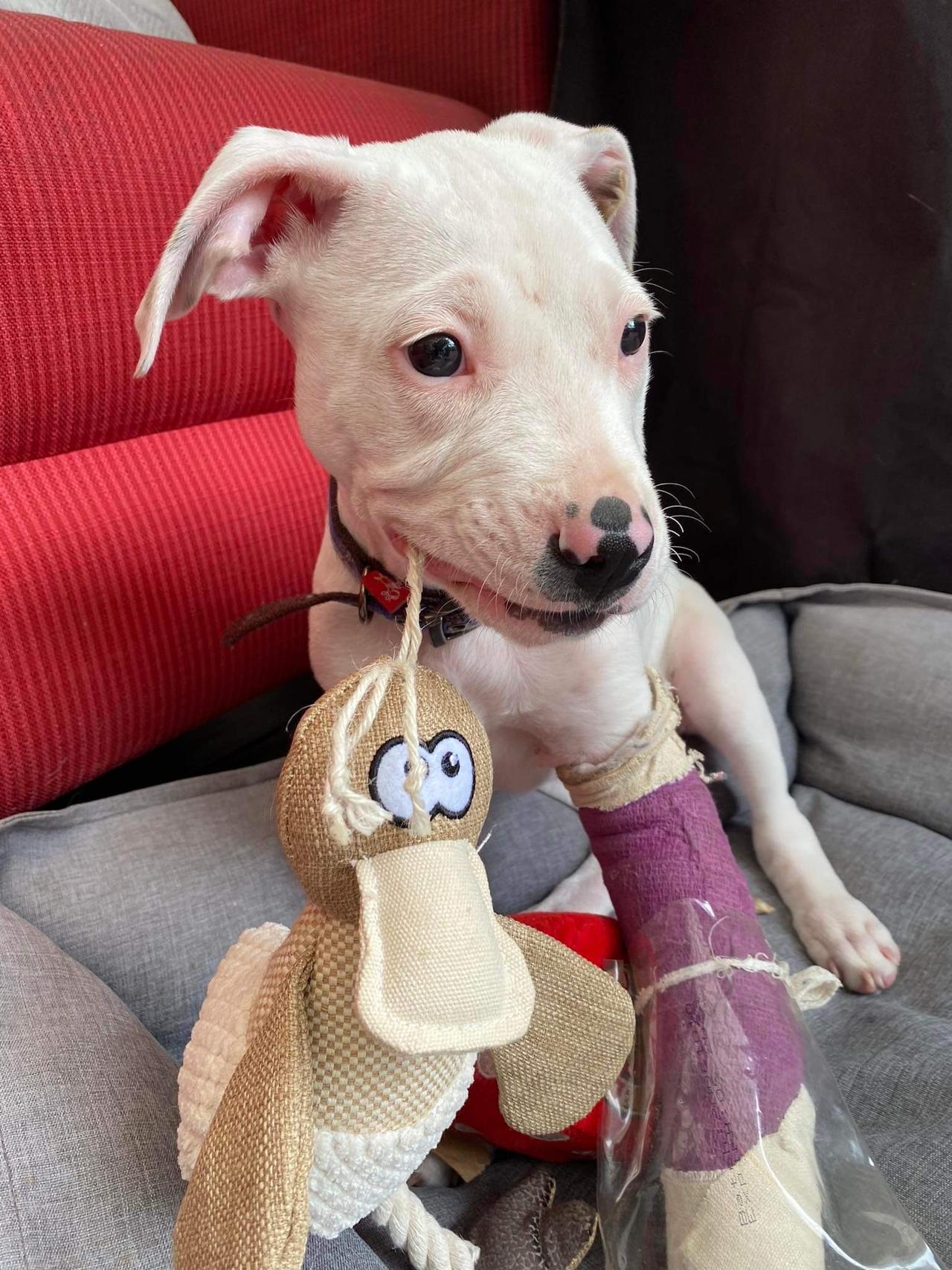 He's doing so well and is showing us what a lovely puppy he really is, always cheerful, takes his vet visits like a champ and loves everyone! If ever a puppy deserved a whole lot of people to rally round and help then it's him.
