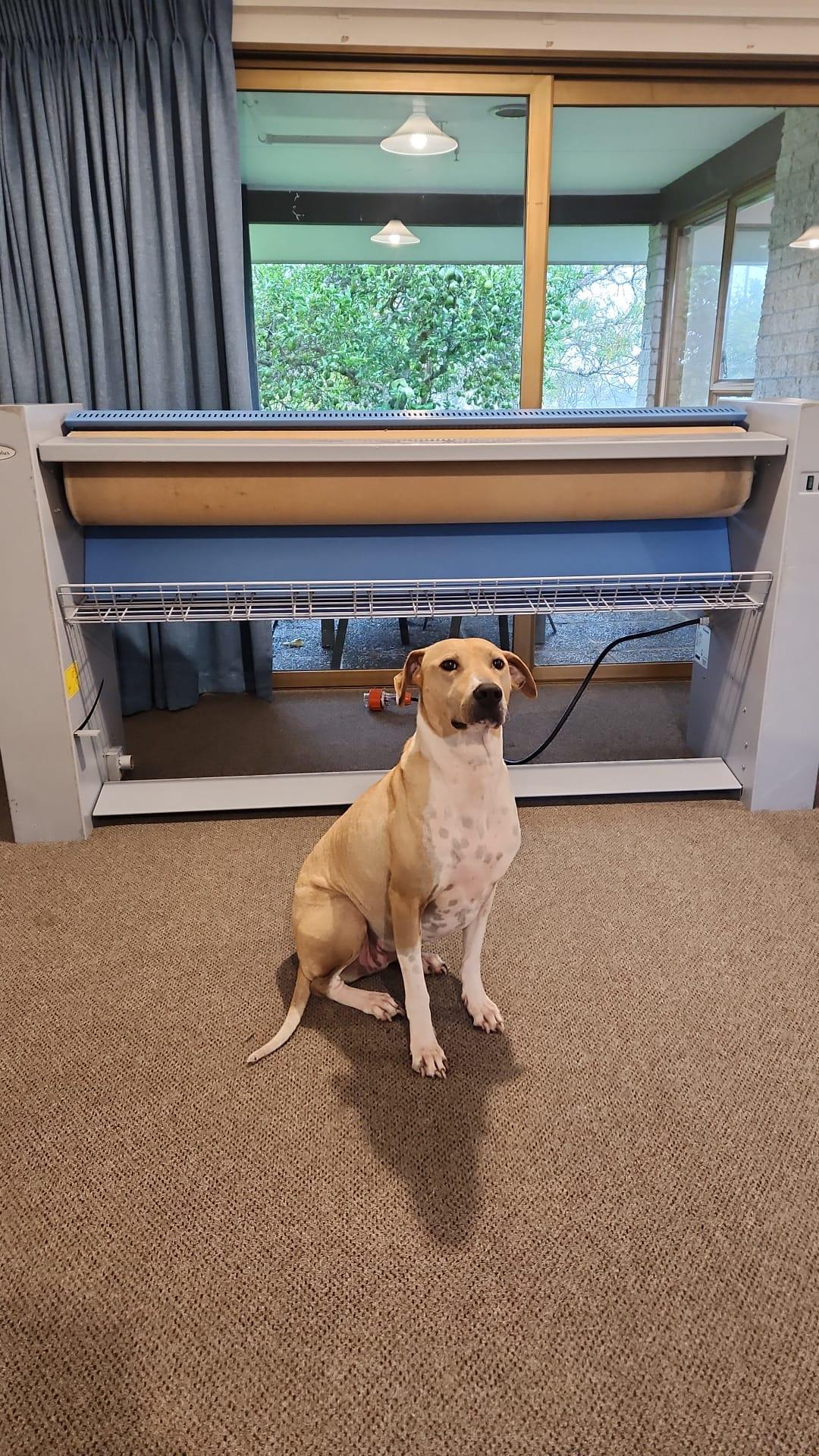 Thanks so very much for your support! We are getting closer! Daisy (the Rescue Dog) has checked an Ironer Roller out and that look on her face is one of approval (honest)! An Ironer Roller will transform the plastic sandwich process that currently takes 90mins down to 15mins! A huge game changer in getting Survival Blankets out the door to those Kiwis who have nothing! Thank you again for supporting this Charitable Project!