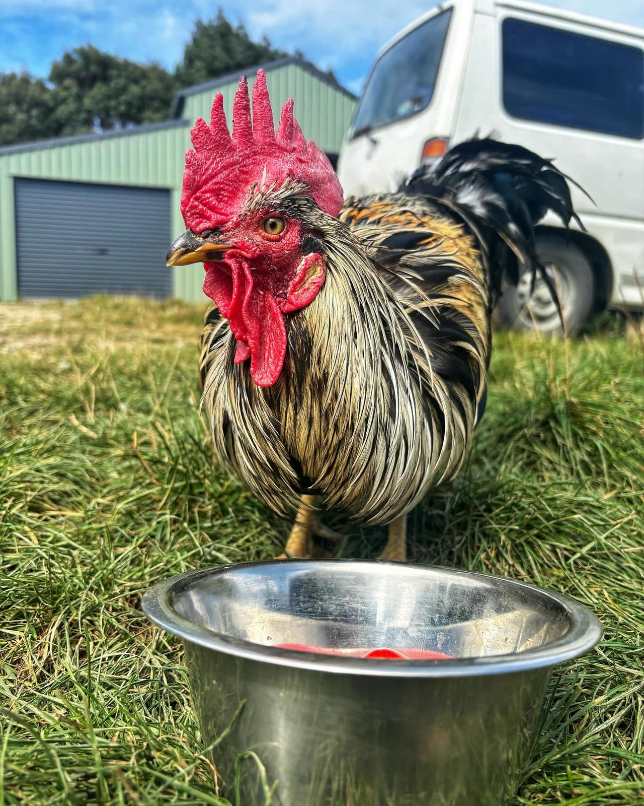 We're so grateful to you all for supporting us to reach our target! It’s because of all of you that we will be able to build new animal shelters, upgrade our fencing, construct a duckling run, buy winter feed, and many other tasks! Pictured below is Rex, one of our special needs roosters, who want to say thank you for giving him vet care and extra lunches to keep him happy and healthy!