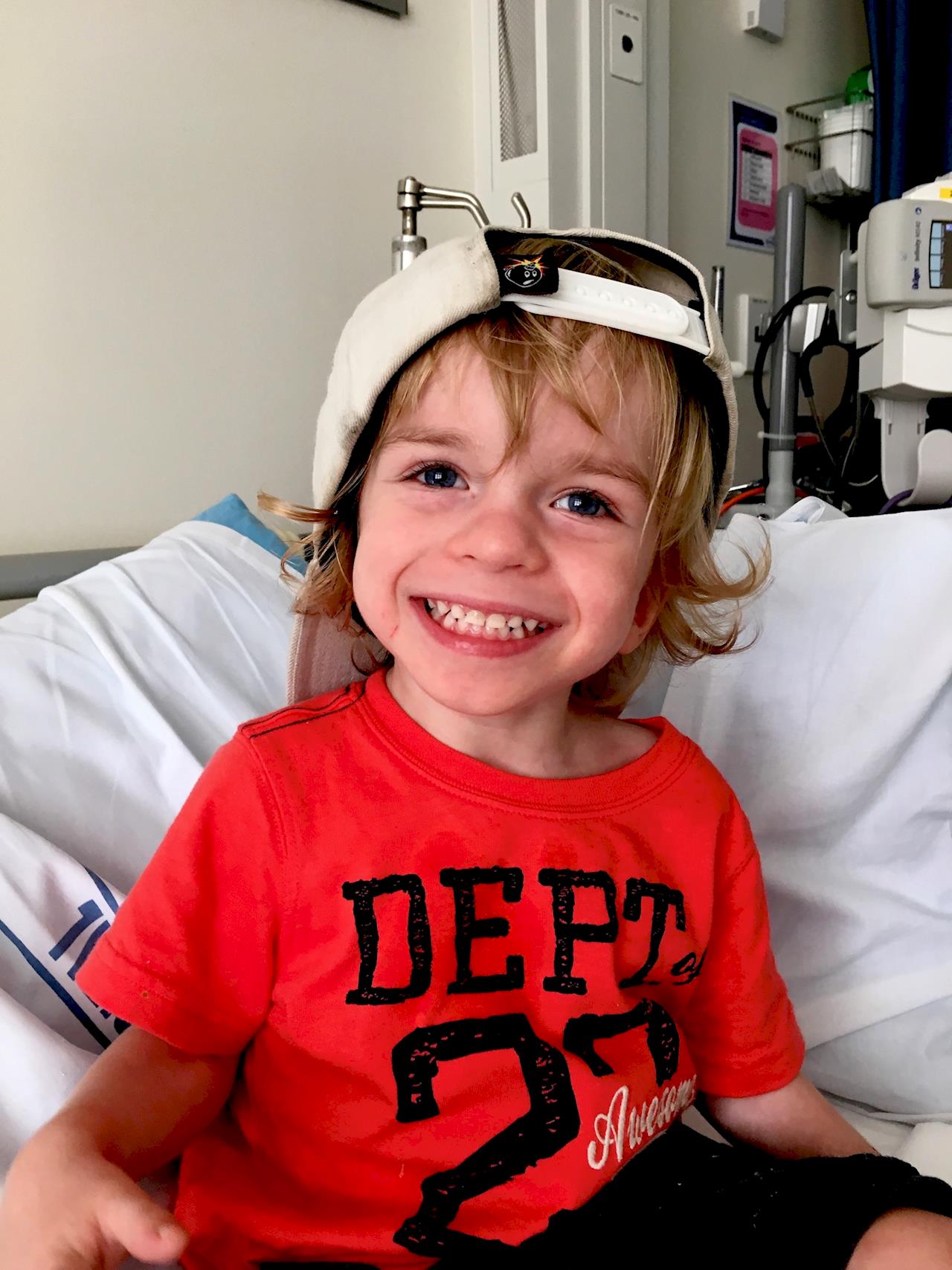 David has had the first of his two major EDAS surgeries on Tuesday 22nd March. The procedure was successful and we are so thankful to the surgeons for their incredible skill and care with an intricate procedure. Surgery took 5 hours and we were so relieved to get the phone call that he had woken up. His first word was "Cuddles" which was a fantastic moment as we have had to be with him 24/7 for the last month to monitor him and ensure he was stable enough to even have the operation - so it was our first mission to get him to the surgeons. Phew!