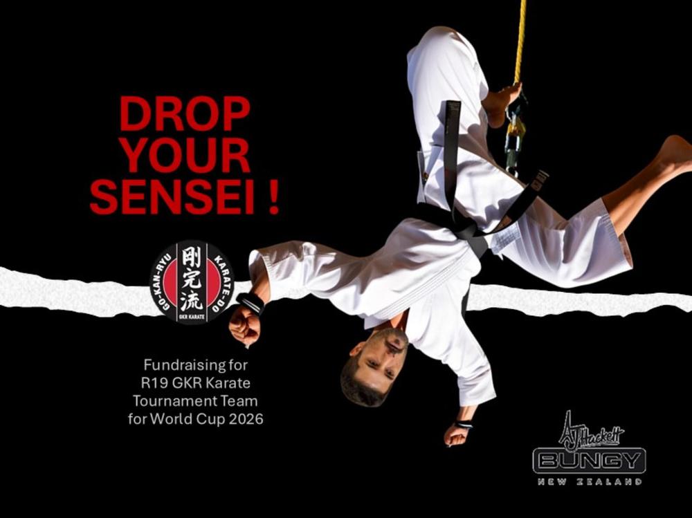 Drop the Sensei fundraising event! Every $1 earnt will go towards supporting our GKR Region 19 tournament team so they can go to the UK and complete in 2026. The Sensei with the most $ raised will have to jump off the Auckland Harbour Bridge!