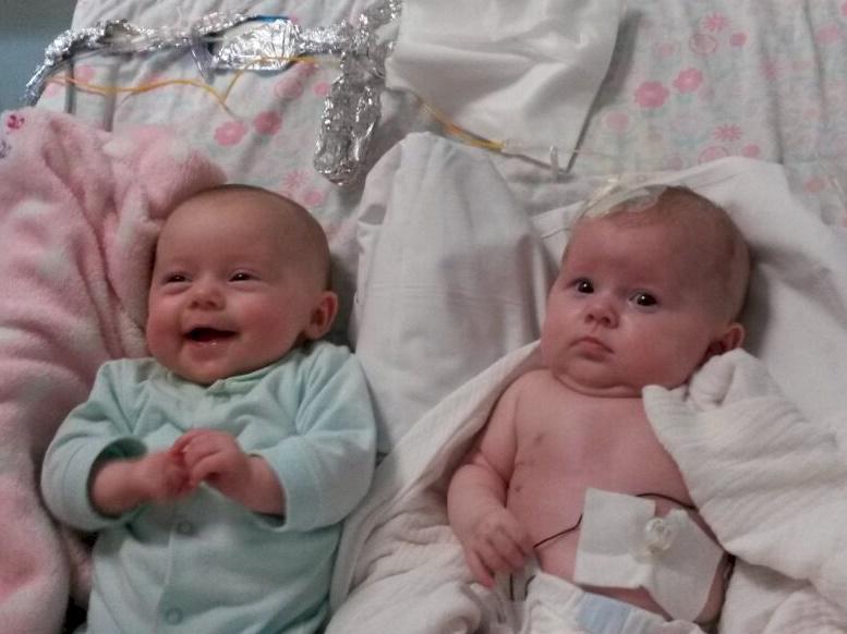 Hello everyone. We would both love to thank you all for your very kind and generous contributions here. Now we are all home we are getting into our new routine. The girls have just passed 5 months now and are making great progress especially in the last week or two. Eden has finally really got to grips with the bottle and is somewhat interested in the farex that her sister Olive is really enjoying. Sure she'll catch up soon enough. Had a visit with the surgeon two weeks ago and he is very pleased with her progress. So are we. Kind regards, God bless. Here's a picture of Olive and Eden (front).