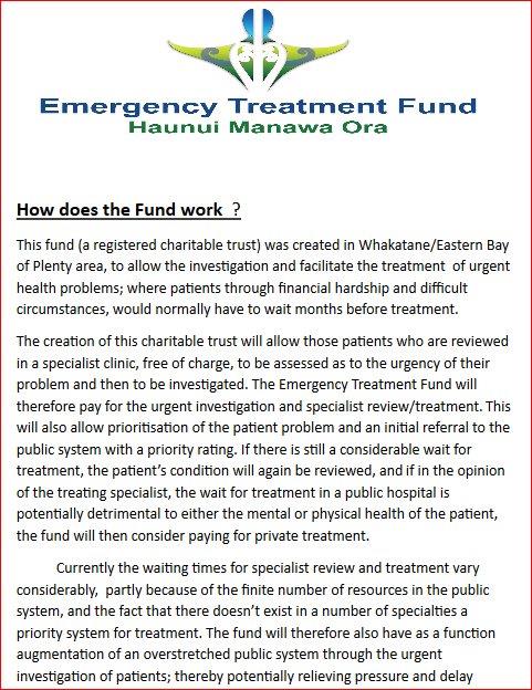 The Emergency Assessment Fund is an Eastern Bay of Plenty charity that helps people to get the urgent medical assessments they need. In many cases people are having to wait too long for critical assessments simply because they cannot afford it.