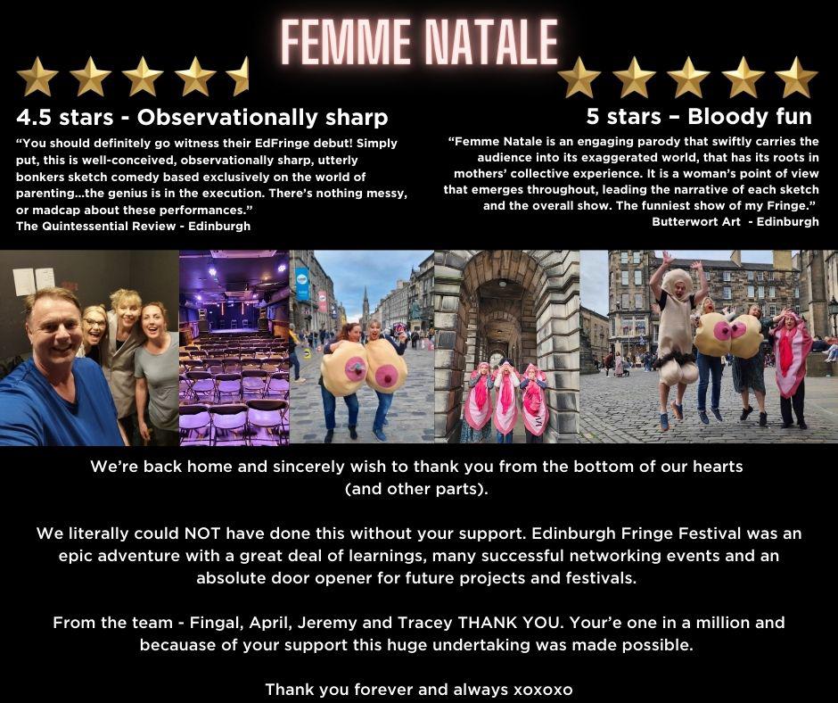 A day without laughter is a day wasted. Femme Natale have been invited to Ed Fringe. We'd love and appreciate your support.
