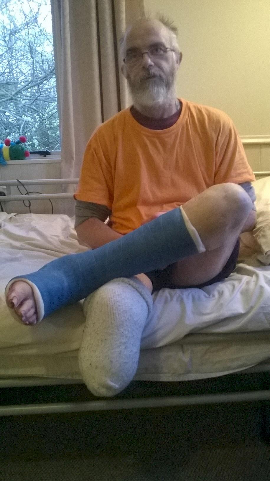 He has started to take weight on his left leg and the cast comes of that leg next week.