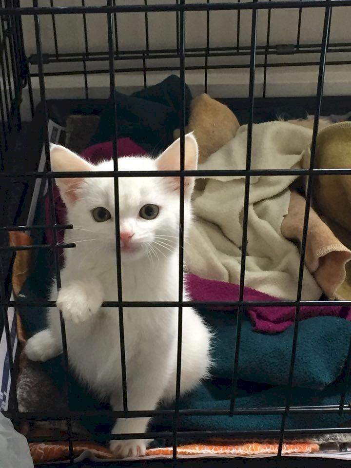 on Tuesday 5 January 2016 SPCA Southlands volunteer Ambulance service picked up Neve (8 week old, DSH white female kitten) who had suffered severe injures that had caused her tail and part of her back to be de-gloved (the fur and skin had come off). She was immediately taken to Elles Road Vets and surgery to amputate her tail and tend to her back end was performed the next day. Neve has come out of surgery and is recovering well. We are hoping that you, the public will help us to help Neve by donating.