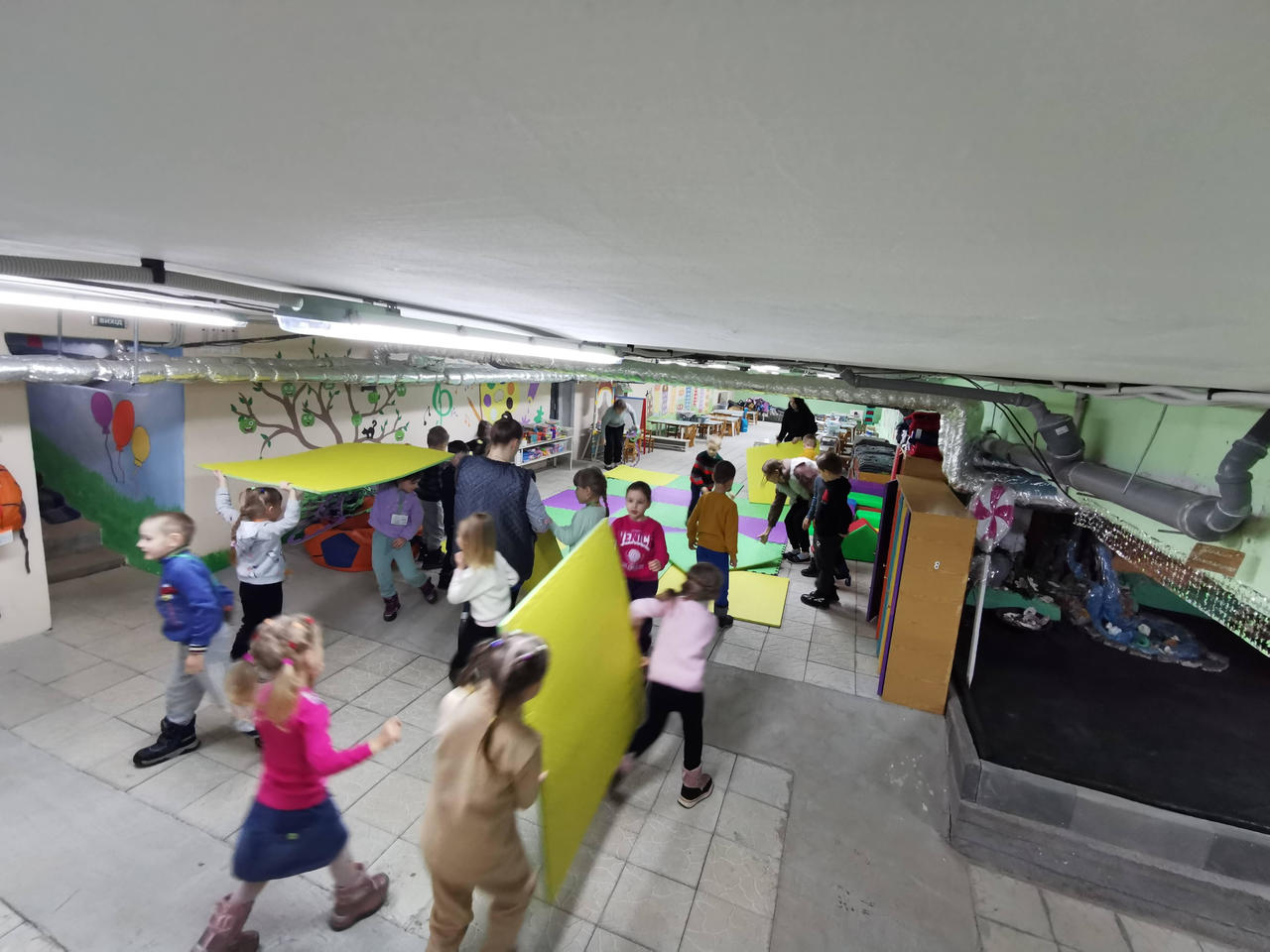 "Hello everyone!!! Good news for you, today Kindergarten 69 received the long-awaited rugs) The children went down to the bomb shelter twice today and were tired. But when I brought them the rugs, they were very happy and started to put together puzzles and create cozy play areas) The children really liked the help. Everyone was very grateful!!!"