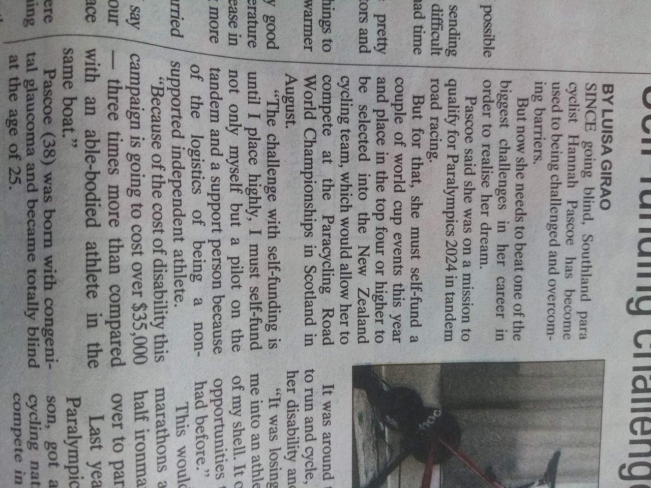8 June 2023Just wanted to thank everyone again for all of your generous contributions. We have recently returned from Alabama having competed. We placed 10th in a 30km time trial despite having a good effort and 7th in an 85km exciting competitive road race. we narrowly missed the top 4 group but were neck-a-neck for 6th placing. We are now waiting to see if we make selection to the world champs in August happening in Scotland. fingers crossed.