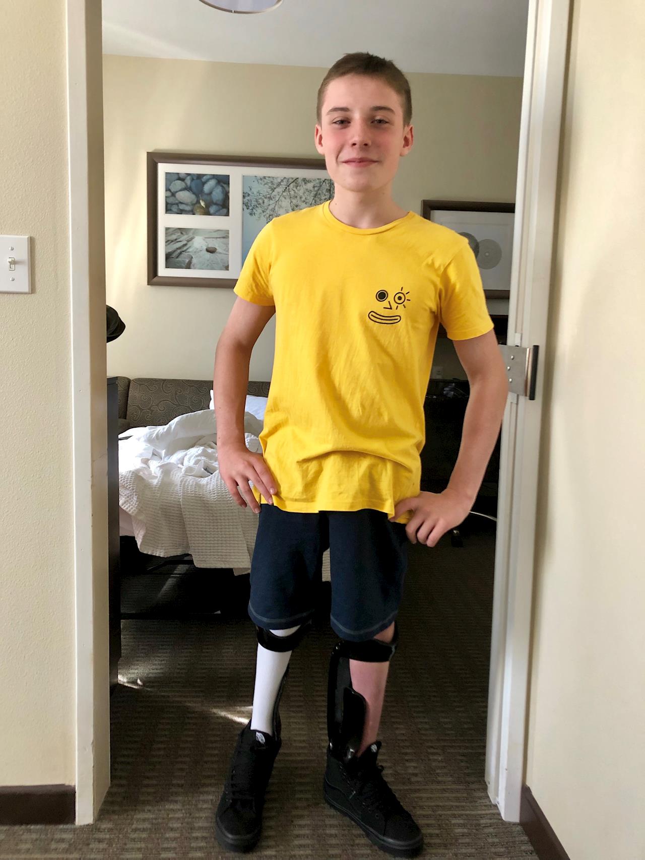 21 February 2023It's 4 year since our trip to California. My son is now driving with a hands control unit fitted to the car, wearing the leg braces allows him to stand up and put the wheelchair in the boot, then he walks around the car to the driver side. He wears the leg braces every day for either work or school, and can take a few steps around the house. Eternally grateful to everyone.