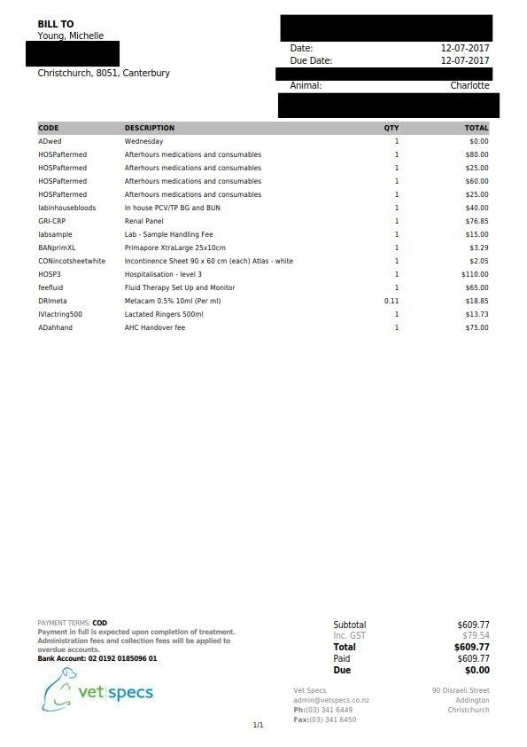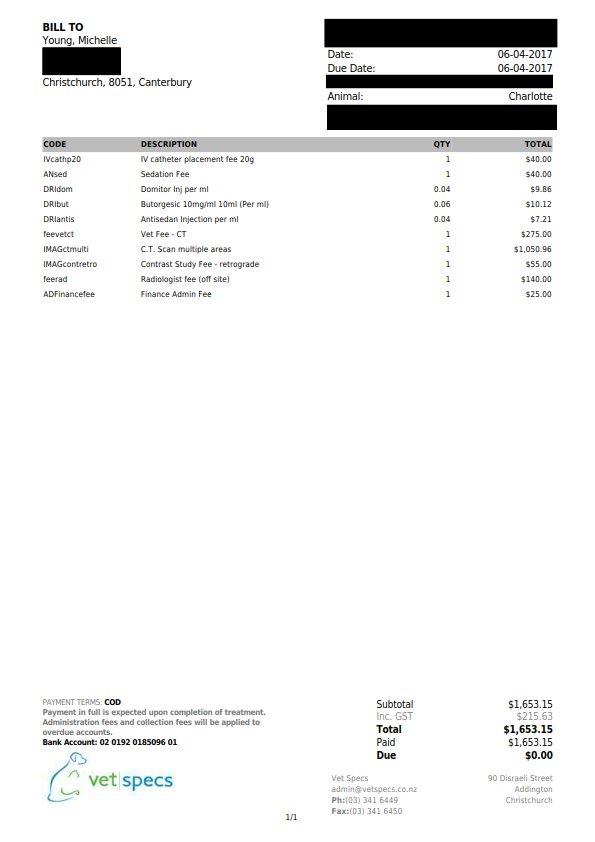 24 May 2018These are the specialist invoices from Charlotte's surgery. Ellie's will be the same, if not very similar
