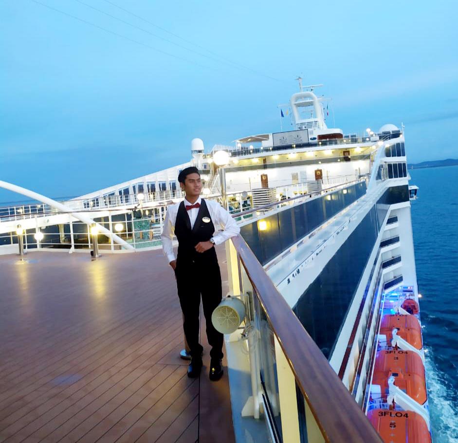 After 33 hours solid travel, he arrived on the cruise ship to quarantine for a week in a room no bigger than a shoe box, no window, no fresh air. His meals were delivered to him and if he set foot outside the door he would have been sent home (one of the new crew did just that...he's now back in Bali)