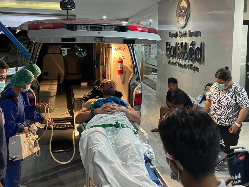 Finn is going to be ok but he has sustained badly broken ribs and a punctured / deflated lung (amongst other more minor injuries). He is now in the ICU at the Bali International Medical Centre in Kuta.