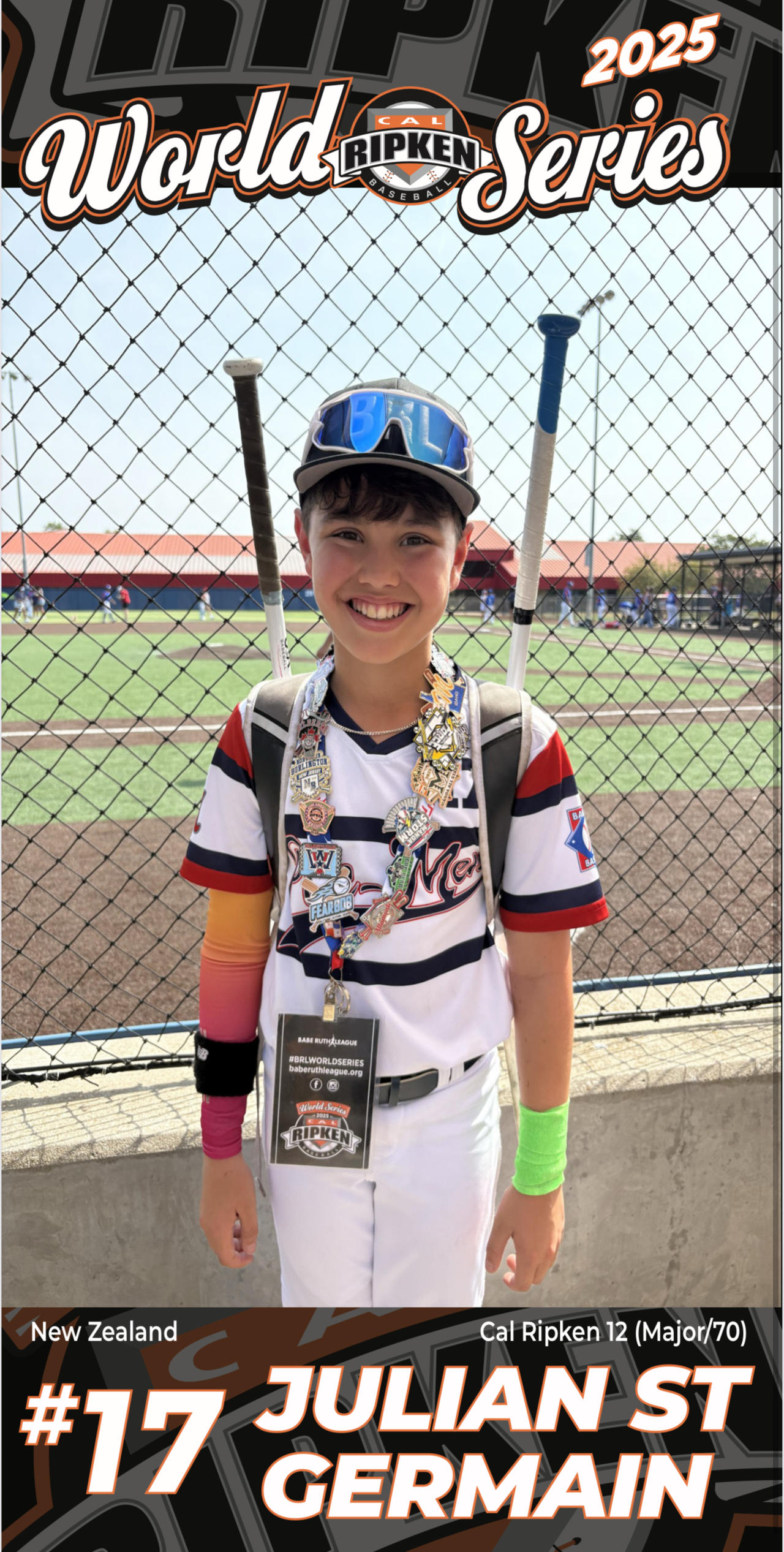 We are beyond proud that our son Julian has been selected to represent New Zealand for the 2025 Pac-Men 12U team to compete at the Cal Ripken World Series—a once in a lifetime opportunity to play baseball on the world stage in his birth country, the United States!