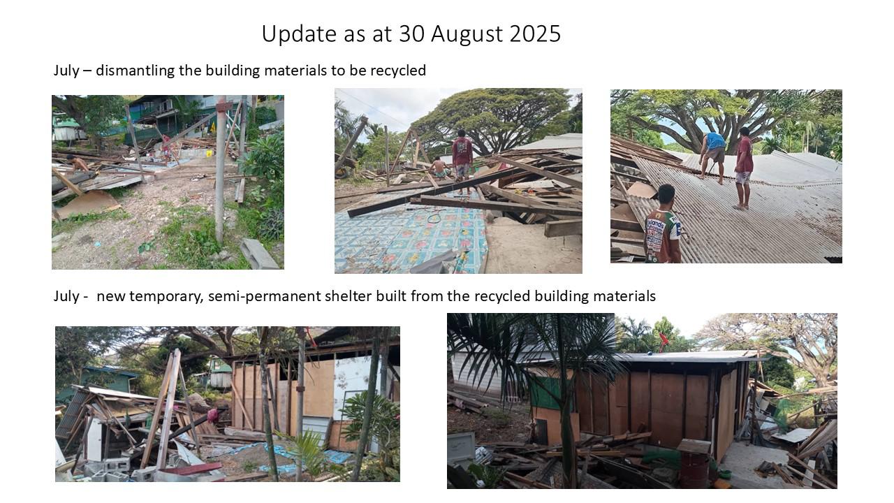 2 December 2025Not much has changed for my sister and her family. The authorities are still not forthcoming with the relocation and rebuild of their home. They received some financial help for their day to day living some time last year, but of course, with no money coming in, that money is long gone. In November 2025, they recycled some of the building materials and built another little shack in the same site where they are living to this day. Of course the land is still slipping so it is very dangerous for them to live there.