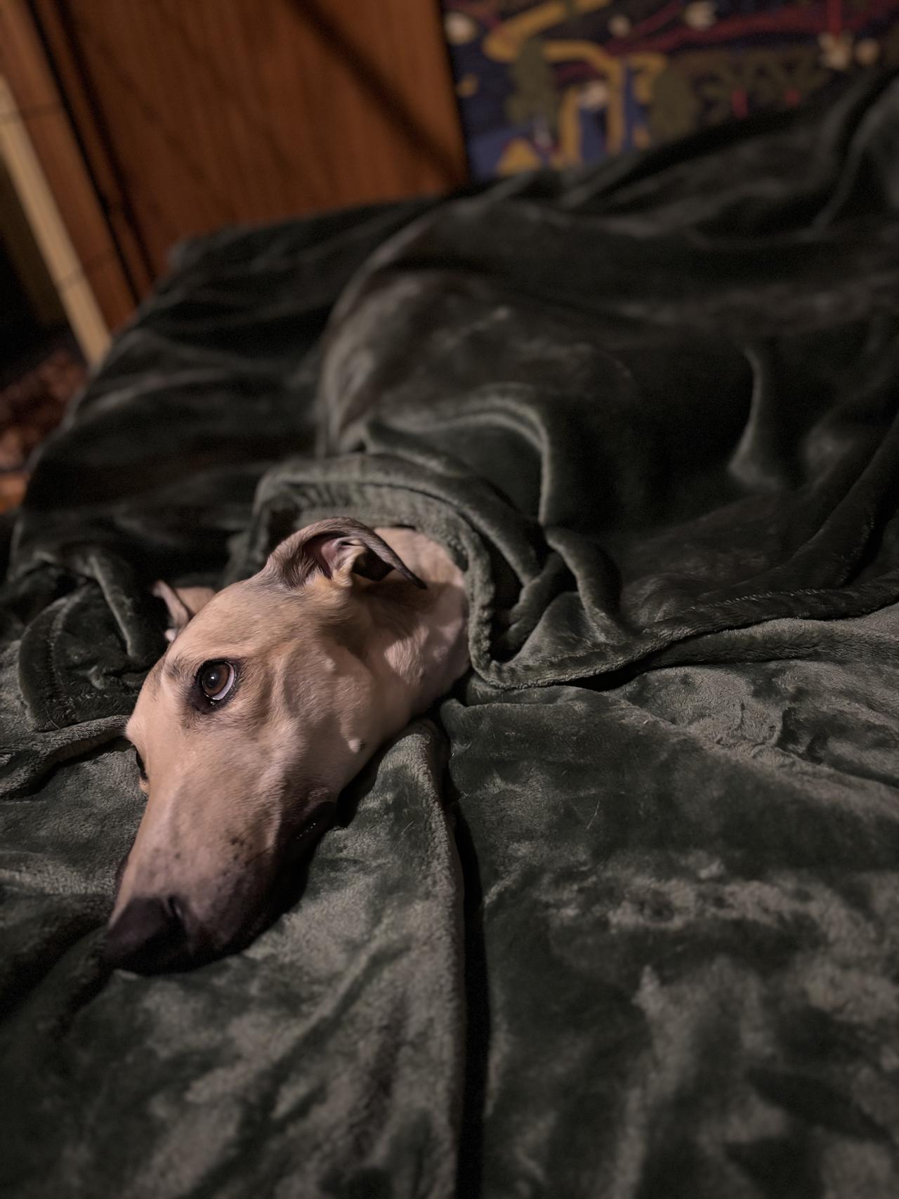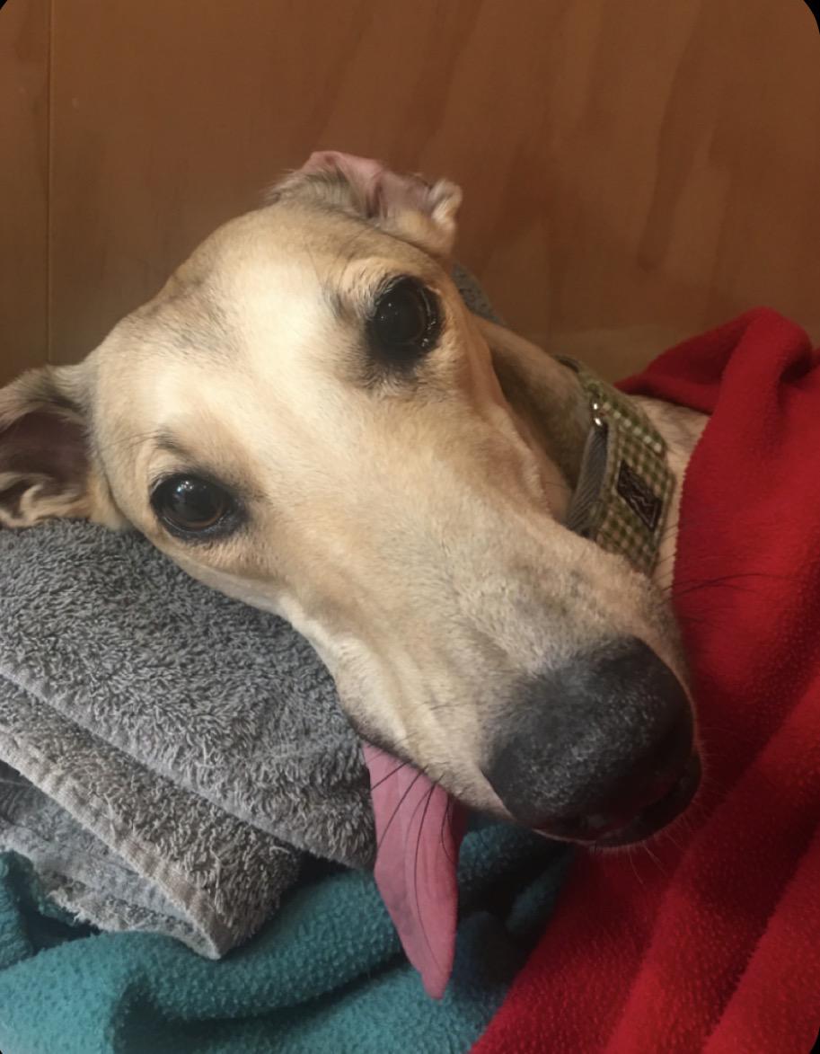 17 April 2026Ottie couldn’t get to sleep until 2am, and of course that meant that Matt also couldn’t sleep until then. It might be a long day today, but we have physio and a check up in the afternoon, so we will have a better idea of what’s happening then. Photo shows the princess wrapped up in front of the fire, looking a bit lost and bewildered!