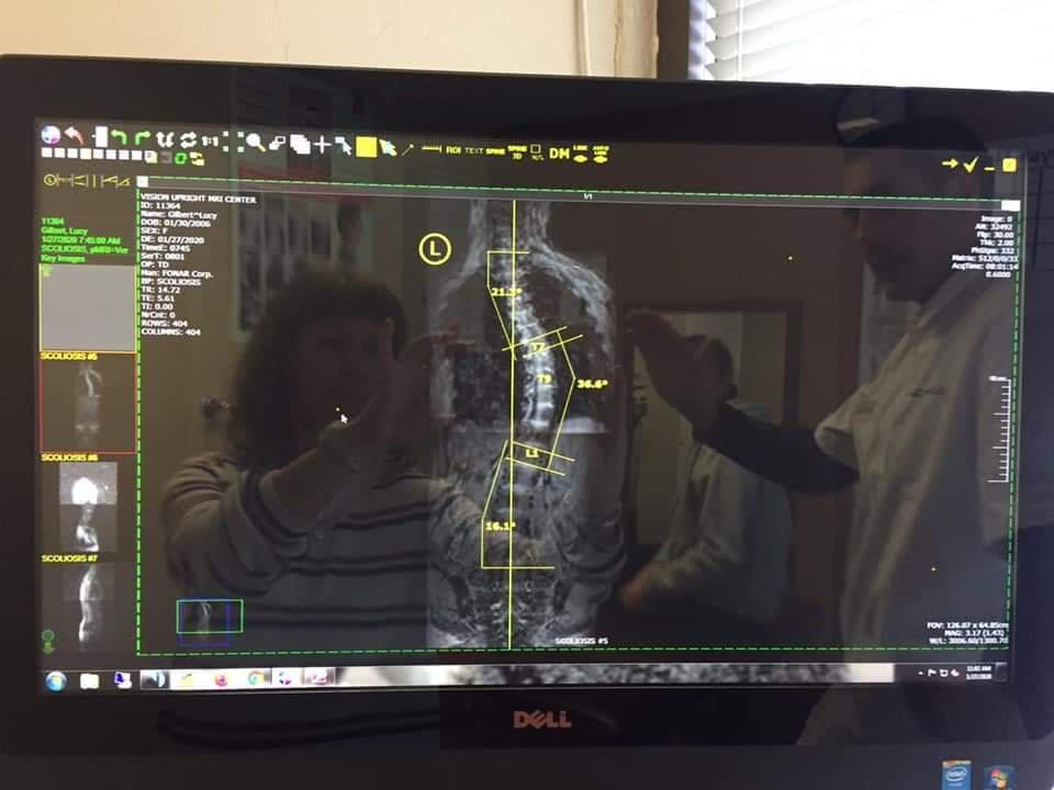 Lucys spine is holding but regressed slightly since our last visit. A huge push has been made to adjust the Brace & mind! You can see from the MRI images her spine on Monday morning right & middle, to the new adjustments left.