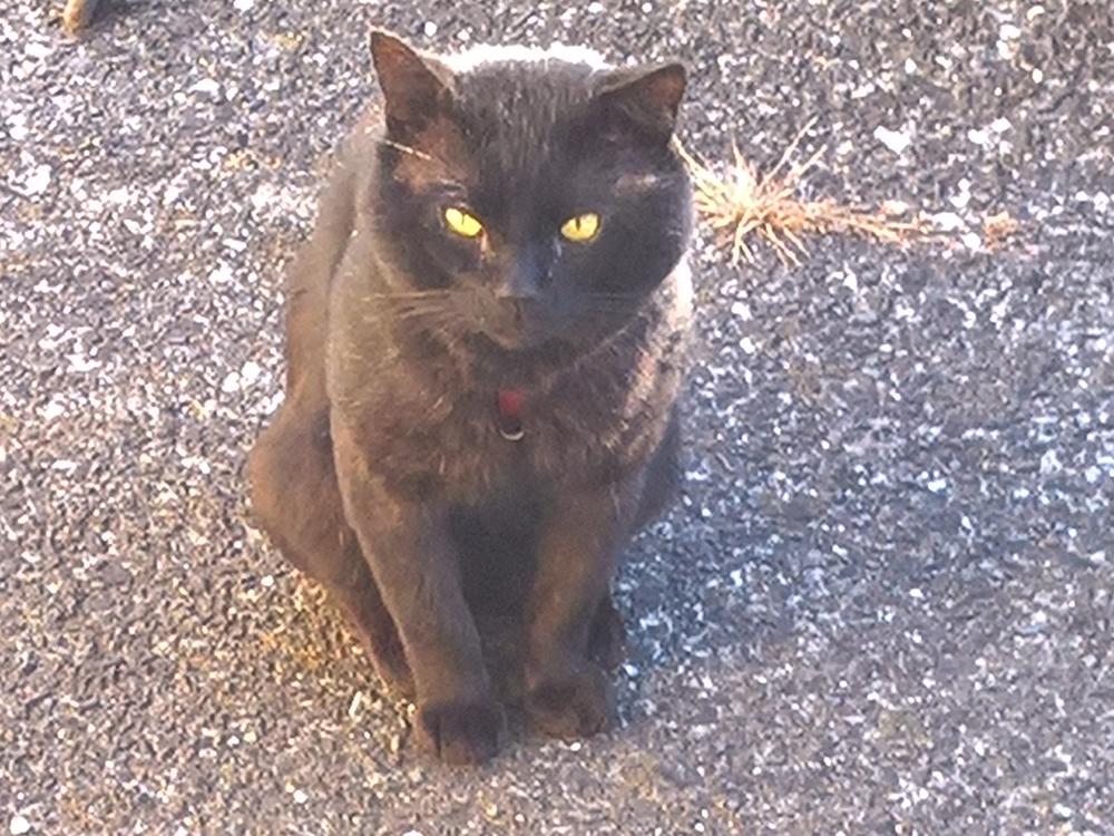 A few months ago, despite our already having a cat, this guy turned up and stayed. At first we couldn't even be out in the yard while he ate, but gradually we won his trust. I believe he's a stray rather than feral. We thought he might only be with us a while, so didn't name him, hence "Black Cat".