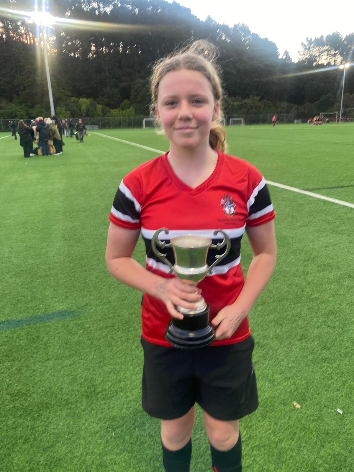 Sophie's team have just won the cup for top U15's in the Wellington Region. They were 1-0 down against St Orans when Sophie got her head onto a delightful cross from her teammate to level up the scores. 2 more from the same teammate brought the cup home to Scots.
