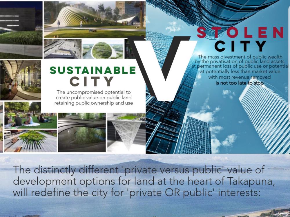 At least six Takapuna public properties, representing hundreds of millions worth of public wealth are also at immediate risk of disposal, due to a decision of 12 councillors; at prices potentially well below market value; and with most cash divested, due to be transferred out of the community. We will lose it all.