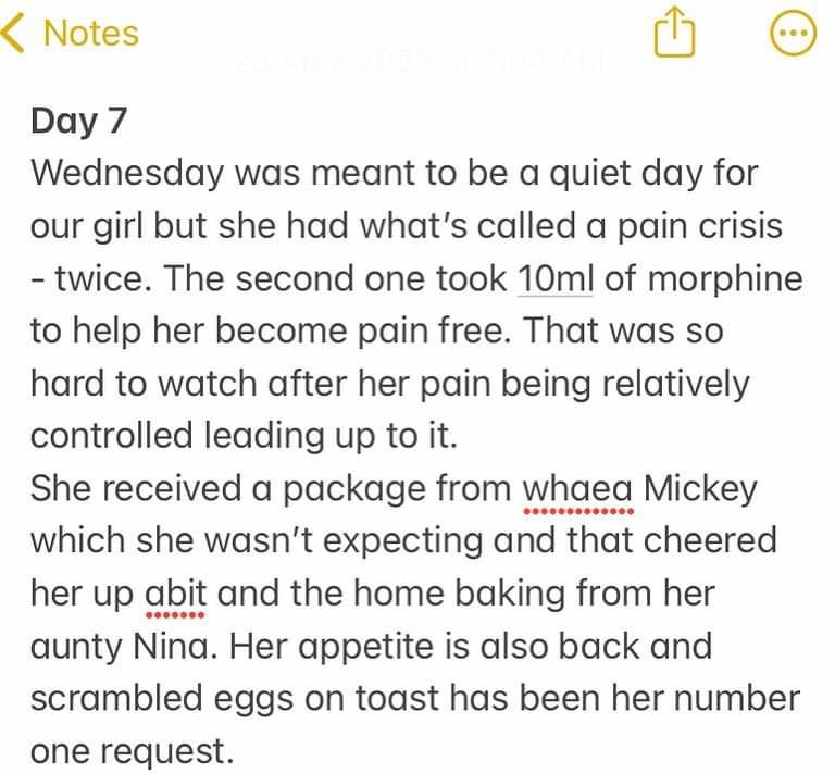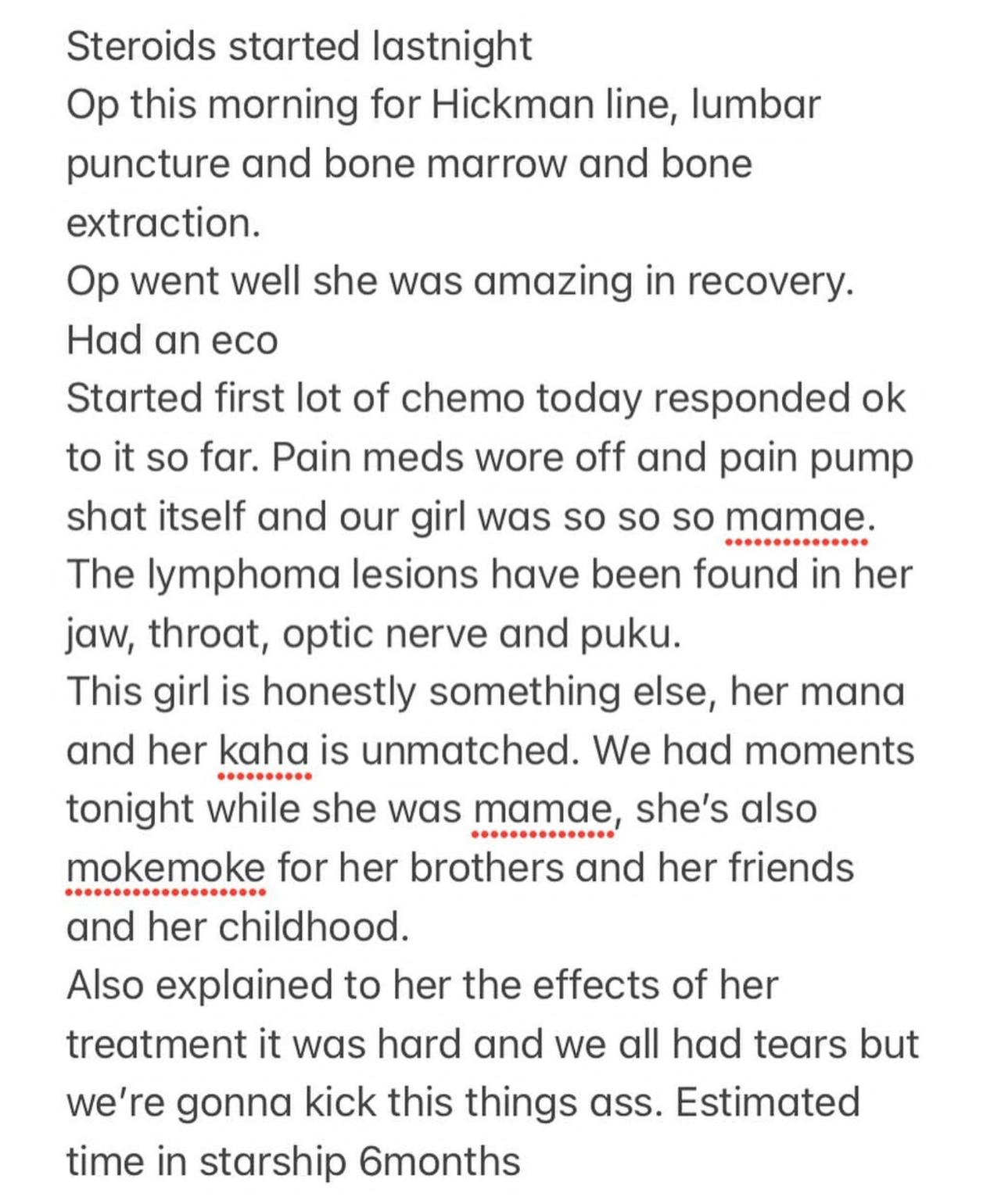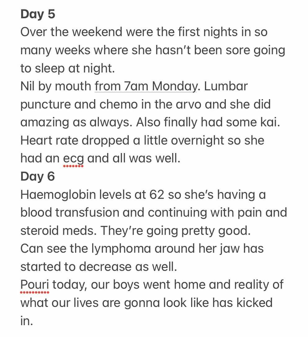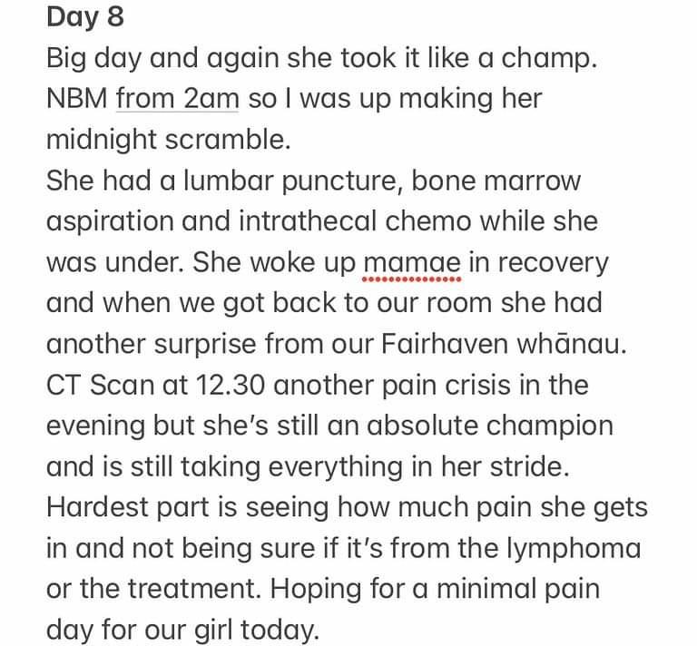 At least when she’s sleeping her body is resting and healing. One more day of chemo āpōpō and then abit of a bigger break till the next lot is due and also a long awaited visit from our boys that we can’t wait for.