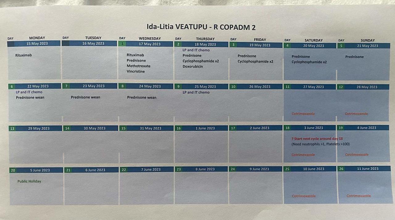 Ida has had 8 lots of cytarabine and 4 lots of etoposide and another 2 lots through her spine on Monday (chemo meds).