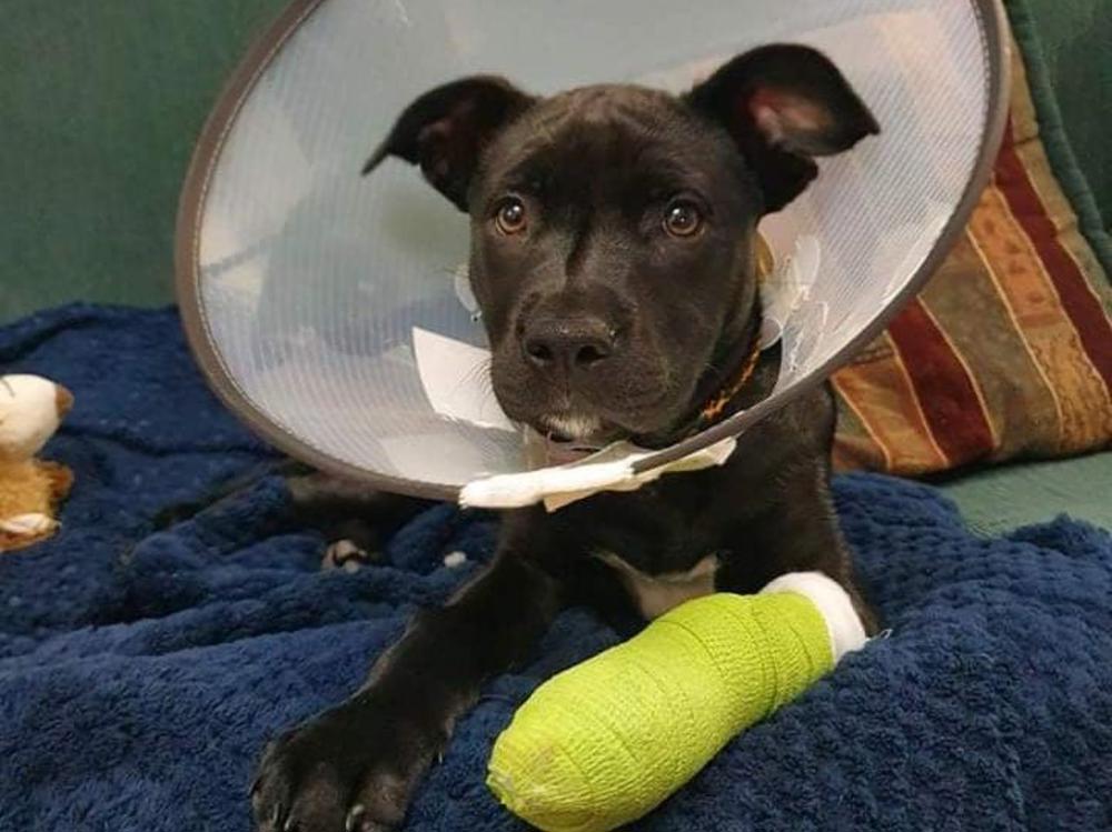 Our wee 3 month old Gin ( Staff x Lab ) hasn't had the best start in life. A litter of 12 puppies and mum became unmaternal at 2 weeks old. She has been hand raised which may be contributing factor to health problems due to nutrition or can be genetic problem.