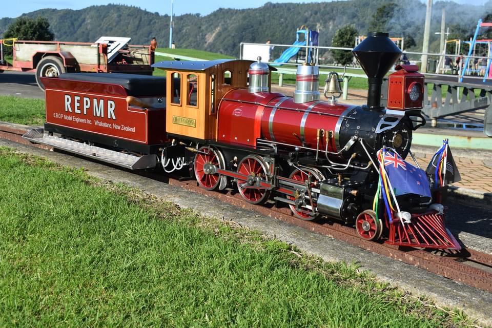 Numerous towns and cities in New Zealand within their parks and recreational reserves have the added attraction of a working miniature railway. More often than not are run, created and financed by the local model engineering club and railway enthusiasts. The town of Whakatane is no exception. The Eastern Bay of Plenty Society of Model Engineers was founded by Dave Fitton, himself the owner & builder of two miniature steam locomotives.