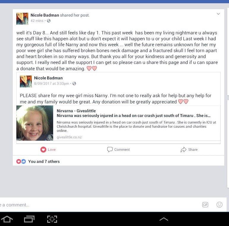 Well it's day 8... and it still feels like day 1, this past week has been my living nightmare. You always see stuff like this happening but you don't expect will happen to you or your child but it did. Last week I had my gorgeous full of life wee Narny and now this week --- the future remains unknown for her. My poor wee girl she has suffered broken bones , a neck injury and a fractured skull. I feel torn apart and broken hearted in so many ways. Thank you all for your kindness, generousity and support. I will really need all the help I can get.So share this page .. and if you can spare a donation that would be amazing.