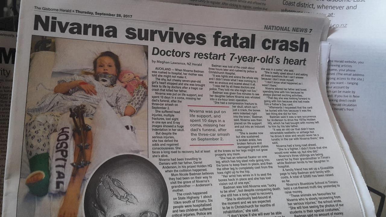 Nivarna still has a long way to go and her future is still unsure. Nicole had the hardest job today of telling Narny that her daddy had died in the crash. A very brave little girl.