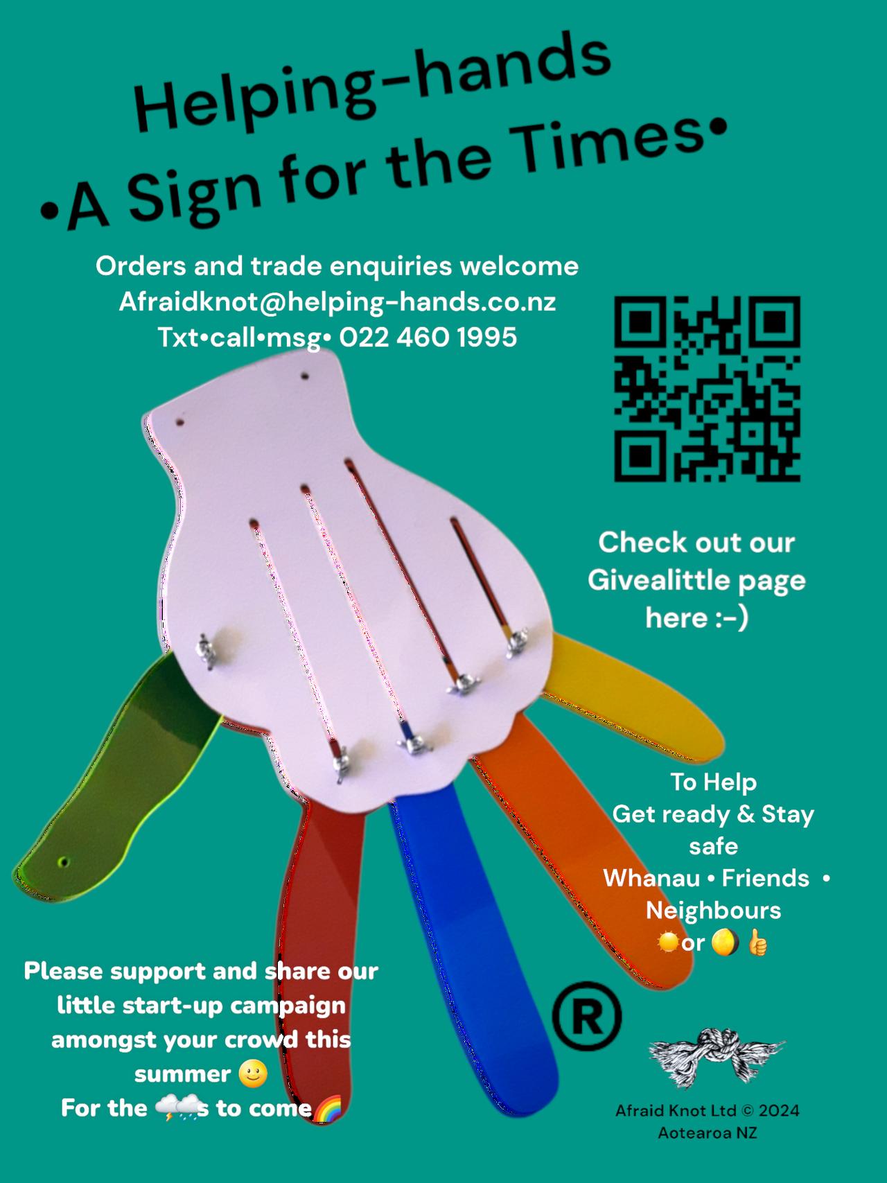 Join us in giving Helping-hands a GO. To help people All tangata, to communicate while sheltering during the aftermath of any 'storm'.