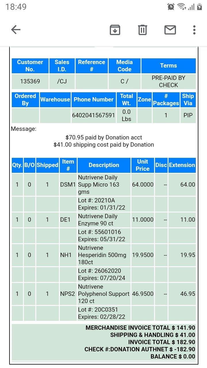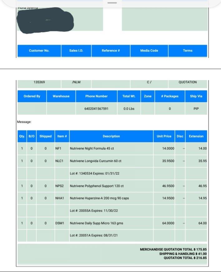 Invoice from Nutrivene. Sorry address has been blurred out for privacy reasons.