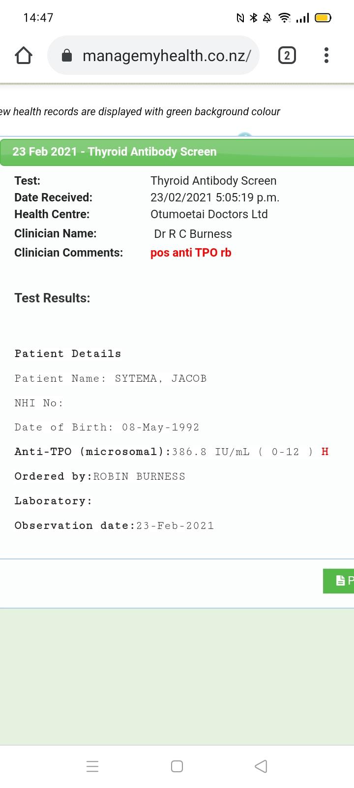 Had Jacobs latest blood test results.and his thyroid antibody results have come back very high normal range is 0-12 Jay's was 386. So this can indicate an autoimmune disease. Got Drs appointment Wednesday afternoon