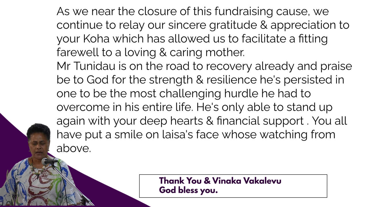 Mr Tunidau is a close family member and prominent church member of the Moraia Fijian Methodist Parish here in Christchurch. All funds raised will be directed to the bank account of Mr Nemani Tunidau as per requirement of Give a little NZ.