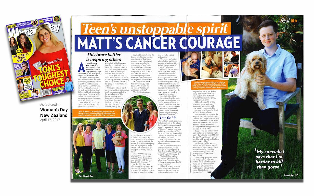 Matt has been featured in the latest issue of Woman's Day (17 April 2017), thanks to Alison and the team.