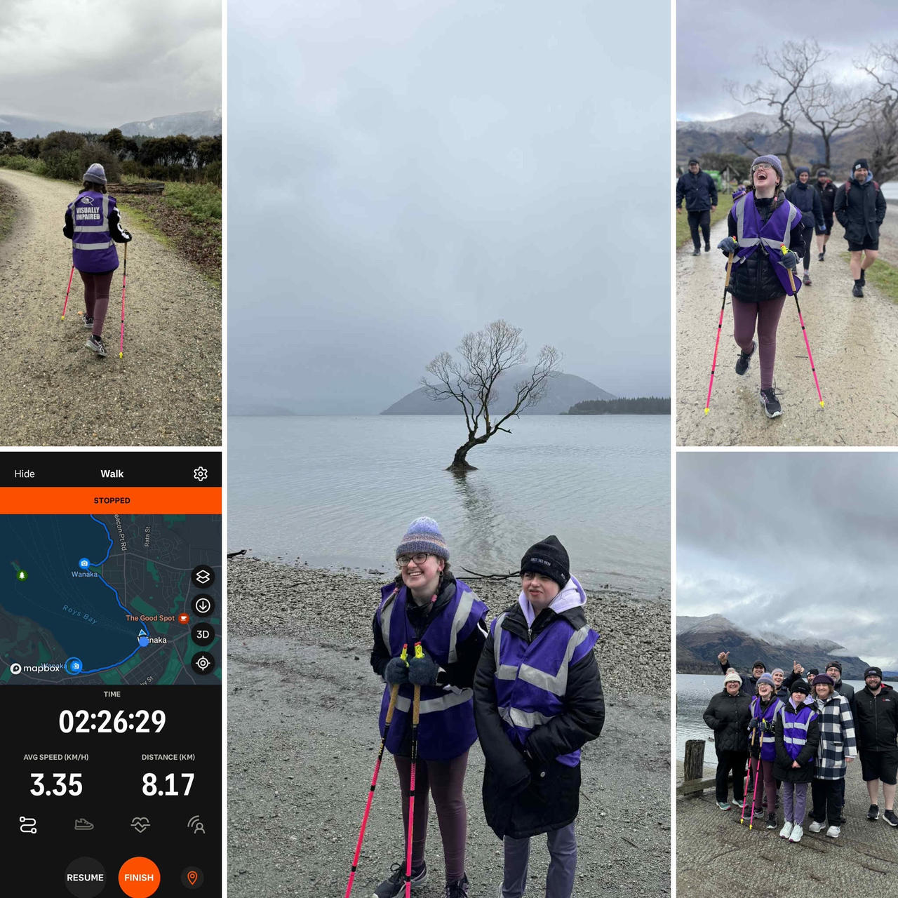 They dit it! On a wet and cold Wanaka day Sarah, Aimee and their crew have completed the 8km walk!