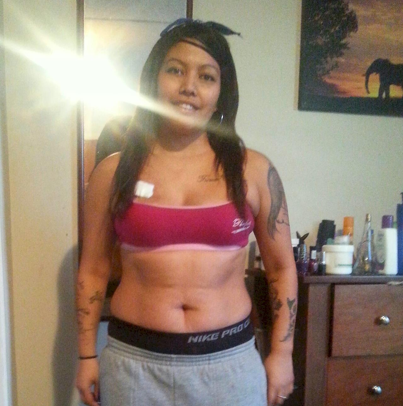 This is afte my first chemo treatment48hrs tied dwn to a machine, we took off too get pizza coz I was starving