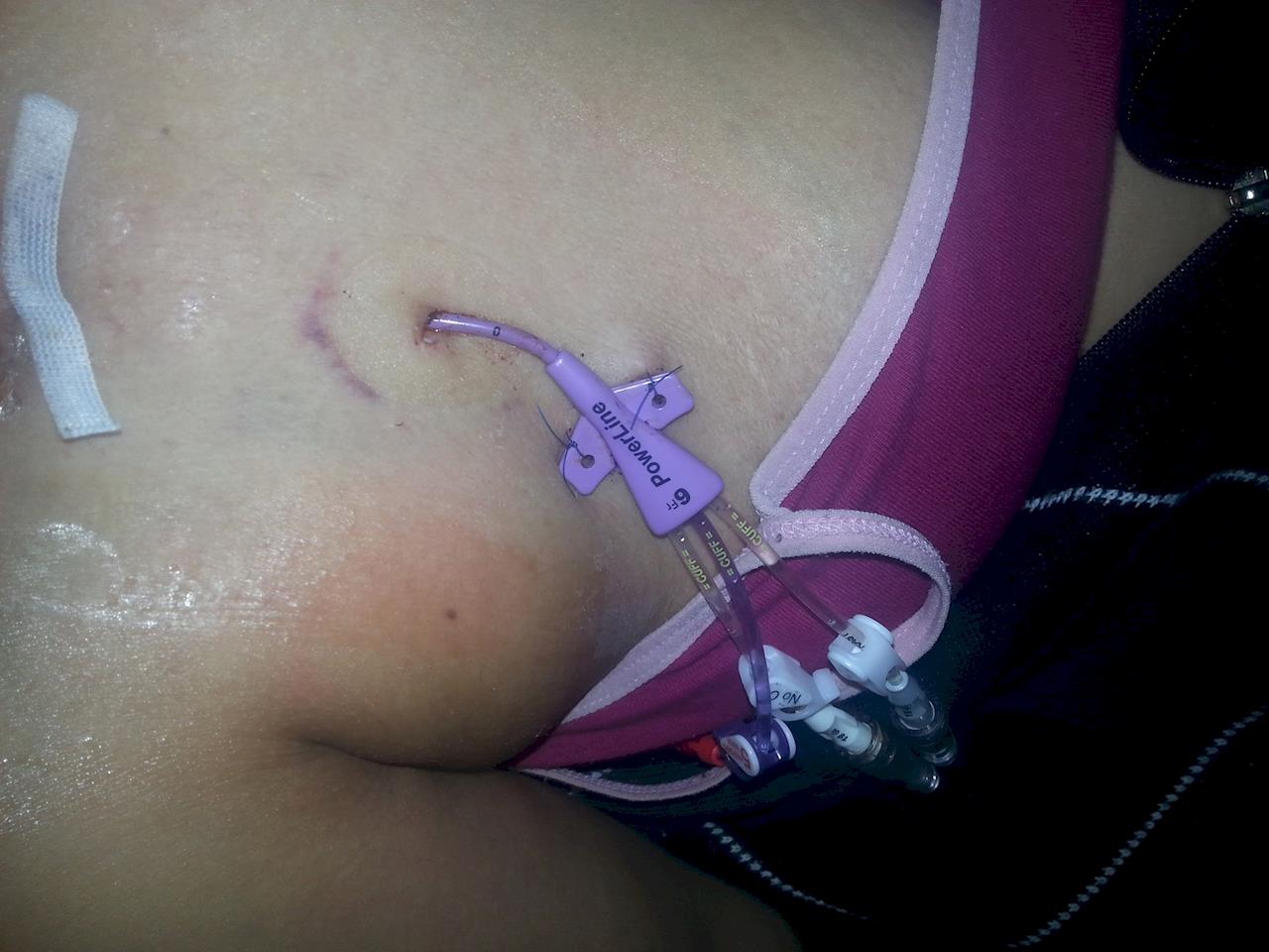 The hickman line in my chest where I will recieve chemo and get bloods taken out