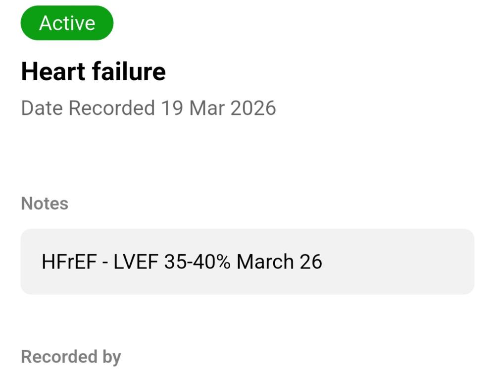 I should be working and building a future for my family. Instead, I’m living with heart failure (LVHFrEF, EF 35–40%), meaning the main pumping part of my heart isn’t working as well as it should, along with chronic pain in both arms from medial epicondylitis and tennis elbow, and a history of epilepsy.