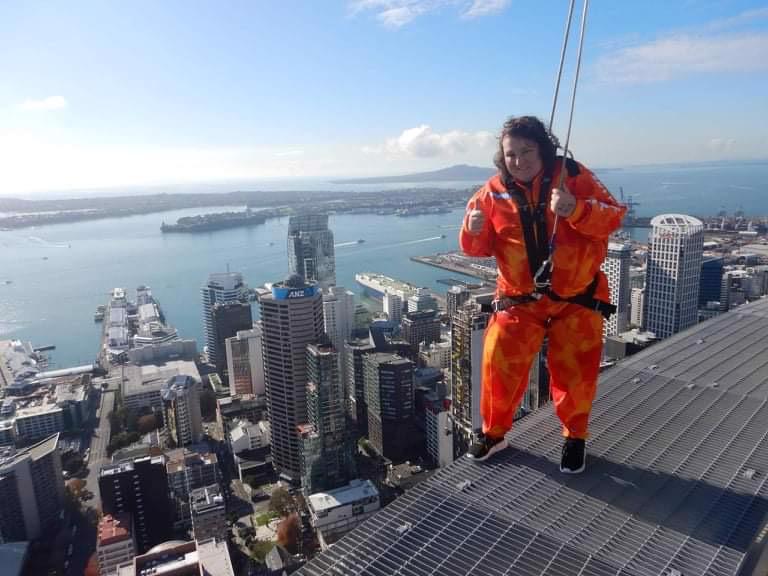 Shinnae did a bungy jump off the sky tower then hans joined her to do a walk around the top of the sky tower also.