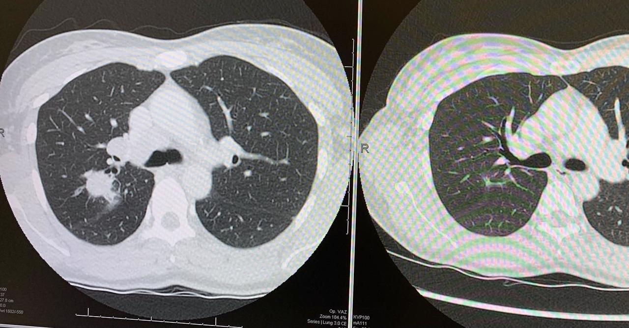 I wanted to check in with you all to again say thank you and also to share that my treatment is working 🙌🏼. You can see on the image the CT scan before (left) and after 8 weeks of chemotherapy treatment 💥. The lymph nodes in my neck and my chest are all massively reduced too💥💥