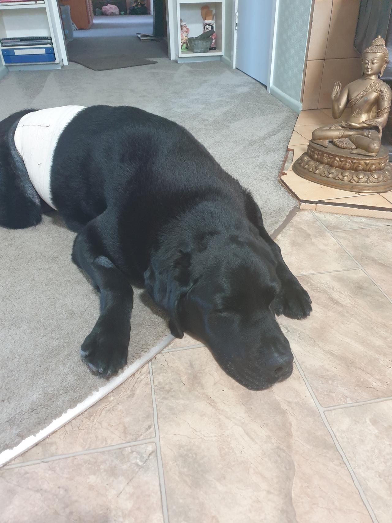 So we finally got a call back from the vet around 7.30am. We explained what happened, and we have been assured, this is not normal to pass that much blood, but as the boy was comfortable on his side again, we were holding on the thoughts that he is going to be all good now. However, he got up around 9am and red blood started to coming out on his passage again. We did not left his side for a moment since we got him home, and it was terrifying to see him this way and knowing that we cannot help him. Les called the vet again and managed to get them out to our place. Jordie got bandaged up and have been taken back to the vet at 11am. We are very anxious now as we still waiting for their call to let us know what is happening.